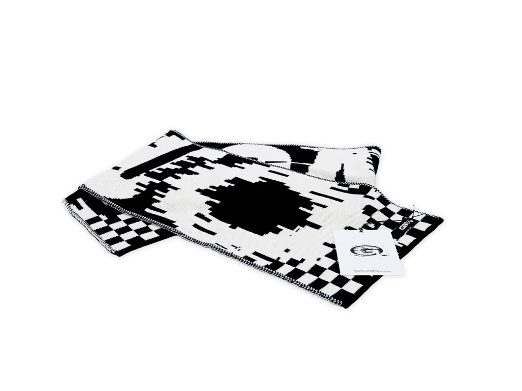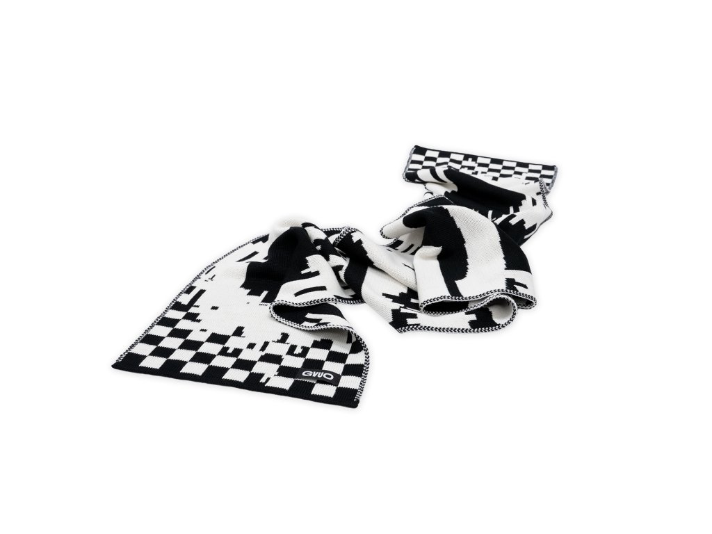 Hladká černo-bílá pletená šála z kvalitní směsové příze vytvoří základ všech designových zimních doplňků.